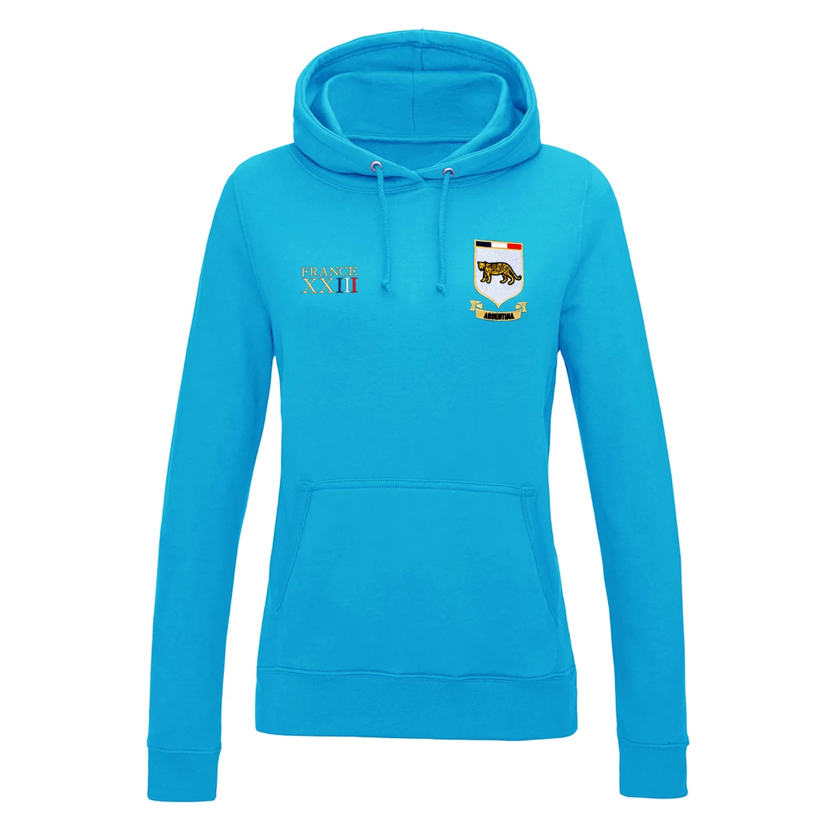 The Argentinian Rugby team was founded in 1910. Support the “Pumas”, in the France 2023 World Cup in Pool-D with this Rugbystore exclusive women’s hoodie.