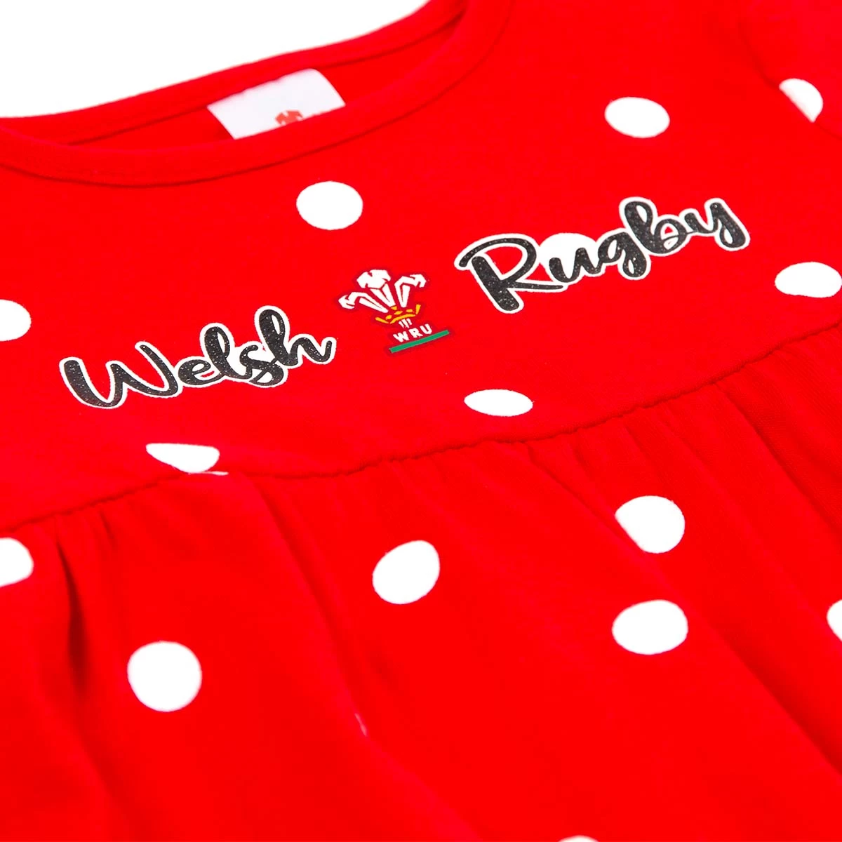 Made from 100% soft cotton fabric for delicate, sensitive skin. This polkadot dress also features the official Wales rugby logo across the front so the whole family can get behind Wales this season.