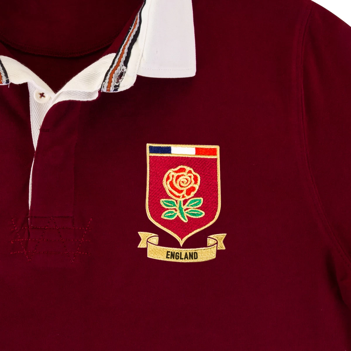 Made with heavyweight cotton, this France XXIII Collection heavyweight shirt is perfect for showing support to England this World Cup. This comfortable long sleeve shirt is made from heavyweight cotton and features a button up collar to complete a traditional rugby look with a super soft finish. Perfect for wearing out and looking smart while showing support for your country this World Cup. This burgundy heavyweight shirt displays the England crest embroidered alongside the France XXIII logo.