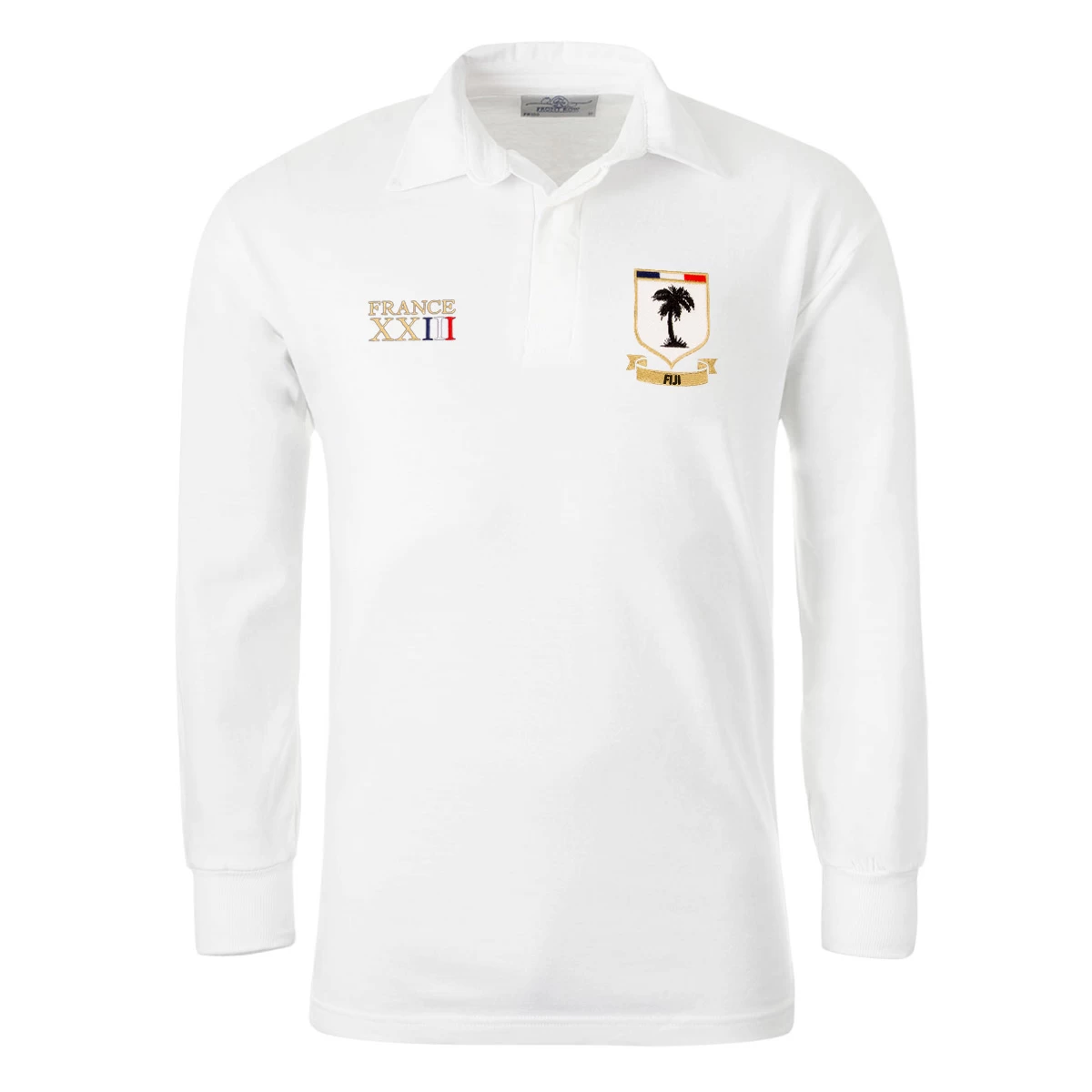 Made with 100% cotton, this France XXIII classic shirt is the perfect option for supporting Fiji this World Cup. This long sleeve traditional shirt is the perfect choice for staying comfortable and cool while out and about this World Cup. The classic shirt presents the timeless look, with button up collar and ribbed cuffs. This white classic shirt proudly displays the Fiji crest embroidered alongside the France XXIII logo, perfect for getting ready for supporting your country this World Cup.