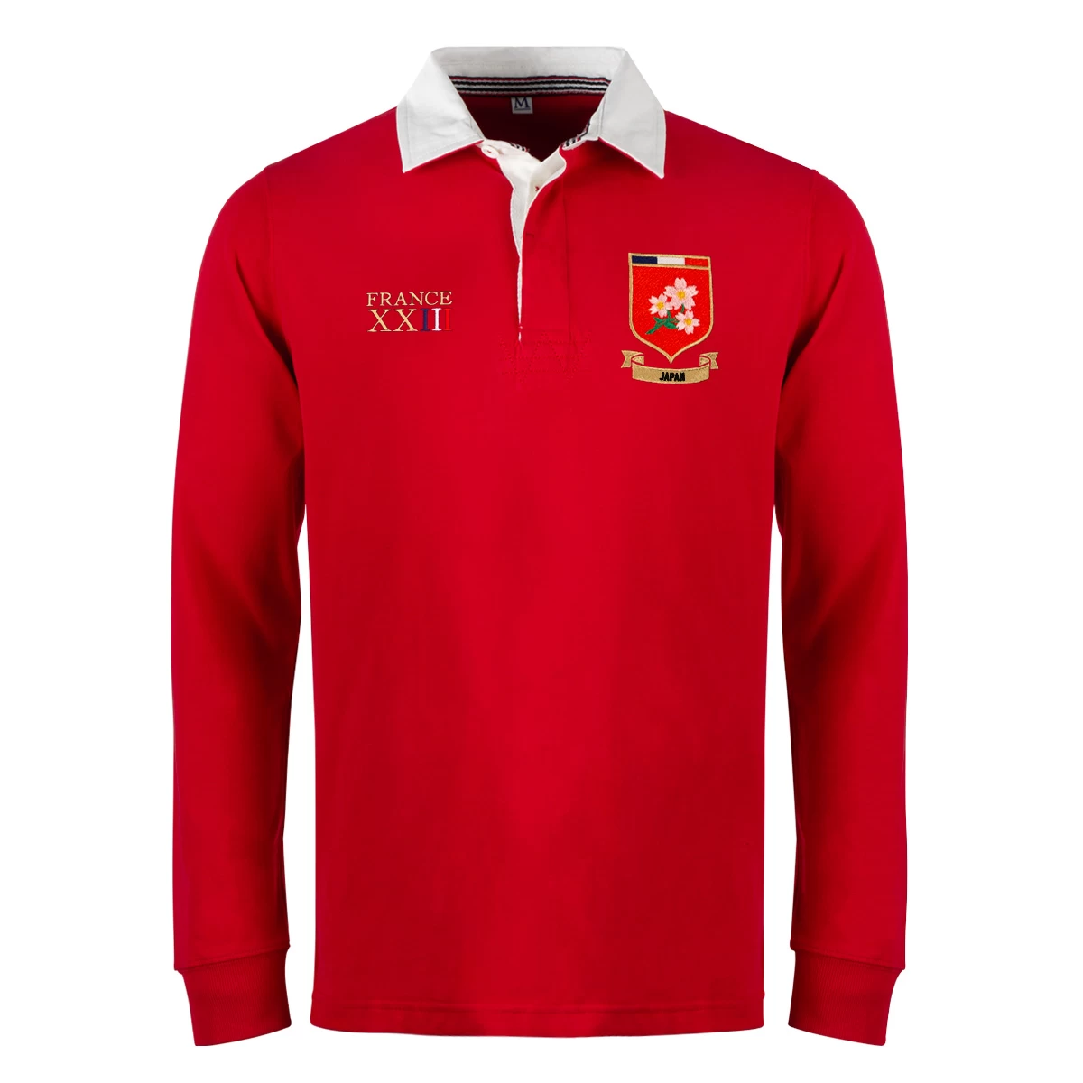 Made with heavyweight cotton, this France XXIII Collection heavyweight shirt is perfect for showing support to Japan this World Cup. This comfortable long sleeve shirt is made from heavyweight cotton and features a button up collar to complete a traditional rugby look with a super soft finish. Perfect for wearing out and looking smart while showing support for your country this World Cup. This red heavyweight shirt displays the Japan crest embroidered alongside the France XXIII logo.
