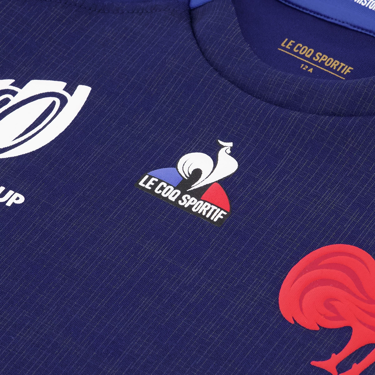 This 100% polyester design offers a relaxed for for fans supporting the French rugby team during the Rugby World Cup.