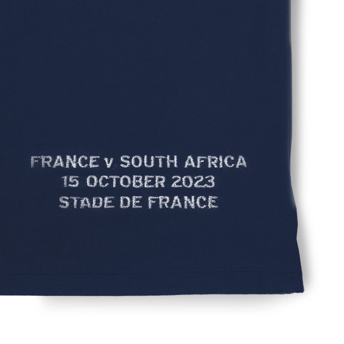 This 100% polyester design offers a relaxed for for fans supporting the French rugby team during the Rugby World Cup. The design includes commemorative, special edition Rugbystore Quarter Finals match embroidery with teams, stadium and date. This is embroidered on the bottom left hem of the shirt.