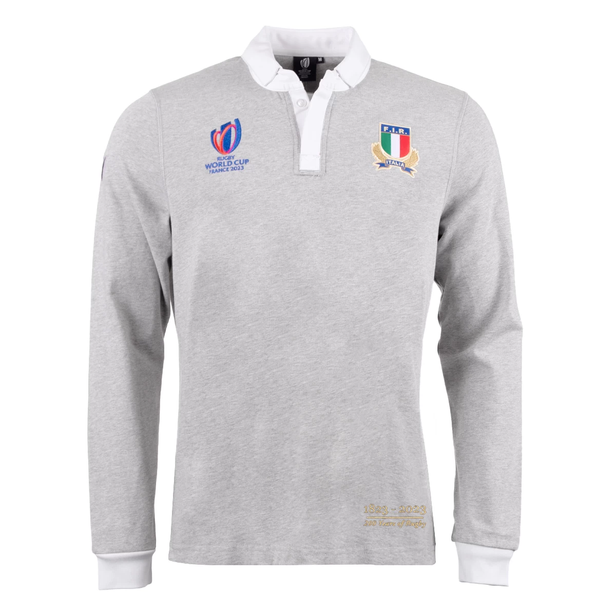 Made with 100% cotton this rugby shirt offers rugby fans a more classic, smart look whilst supporting this season or wherever you go. This Rugby World Cup 2023 Rugby Shirt features the official Italy rugby crest proudly showcased on the upper chest alongside official Rugby World Cup 2023 embroidered for a smart finish. Get behind Italy for a massive year of rugby with the all-new Macron Italy Rugby World Cup 2023 Rugby Shirt.