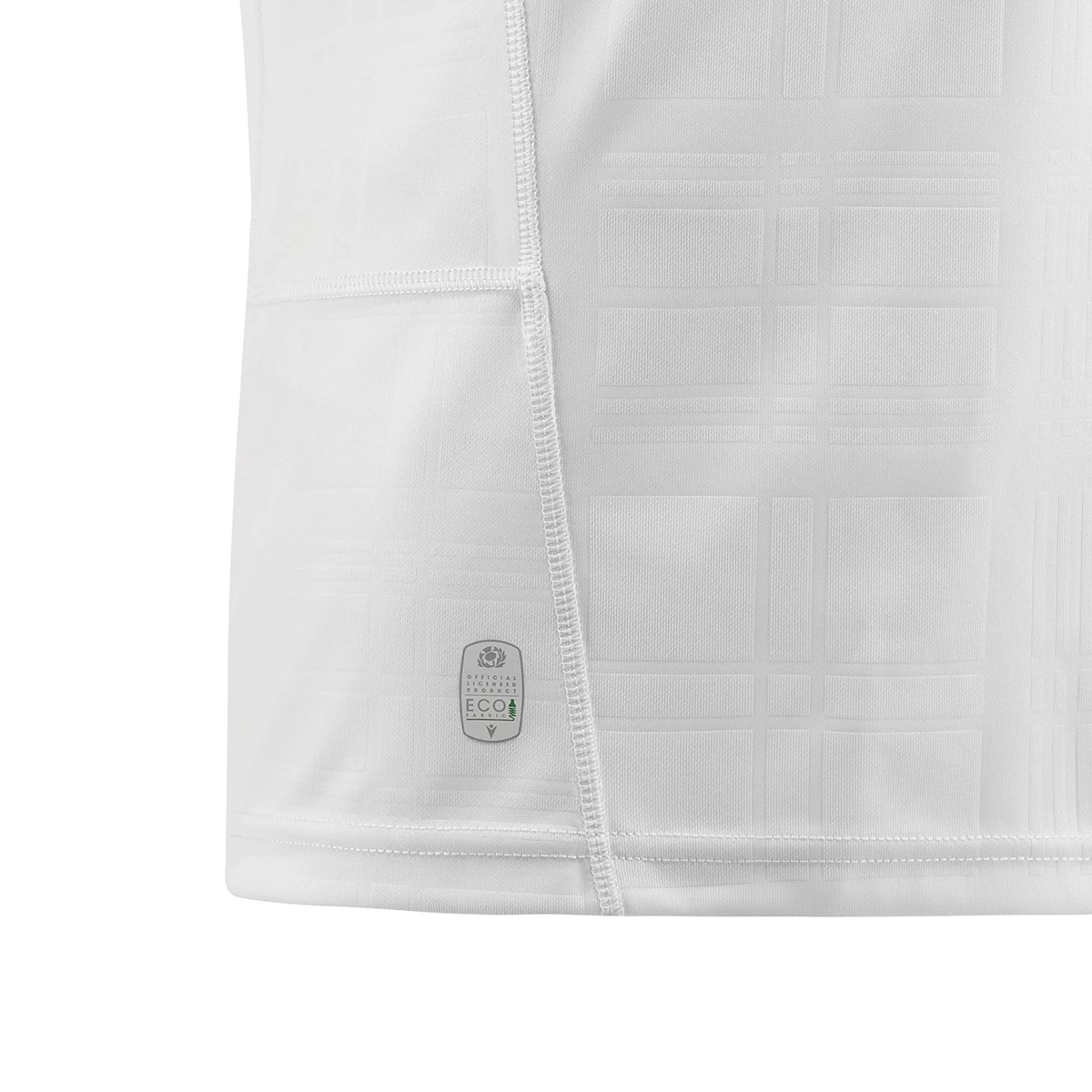 The white rugby shirt is made from 100% recycled polyester eco-fabric for durability and comfort while supporting the team.