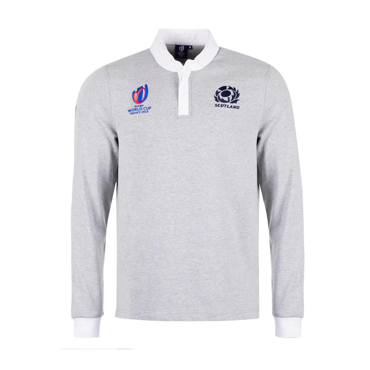 Made with 100% cotton this rugby shirt offers rugby fans a more classic, smart look when supporting this season or wherever you go. This Rugby World Cup 2023 Rugby Shirt features the official Scotland rugby crest proudly showcased on the upper chest alongside official Rugby World Cup 2023 embroidered for a smart finish.Â