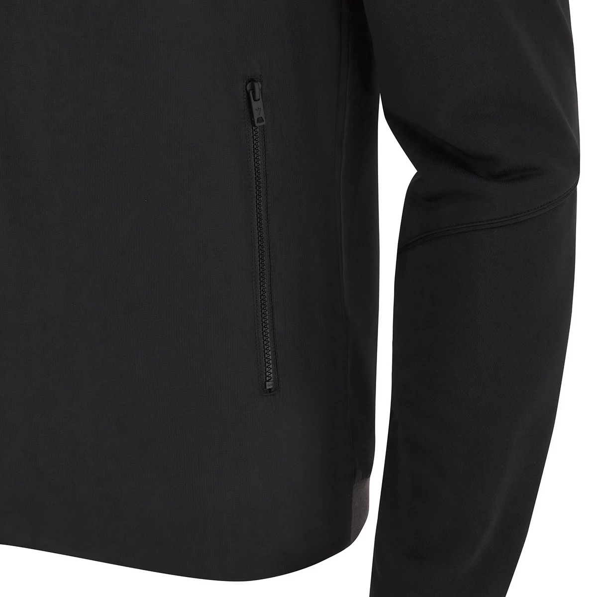 he black full zip hoodie is made from a microfibre and poly-diagonal fabric with a crepe lining to keep you cool and comfortable while supporting the team.