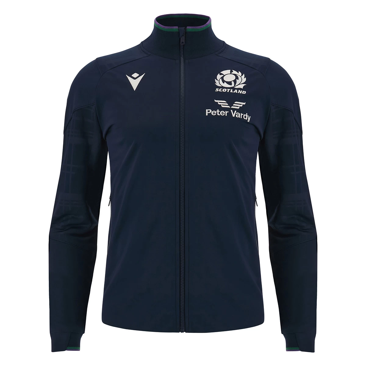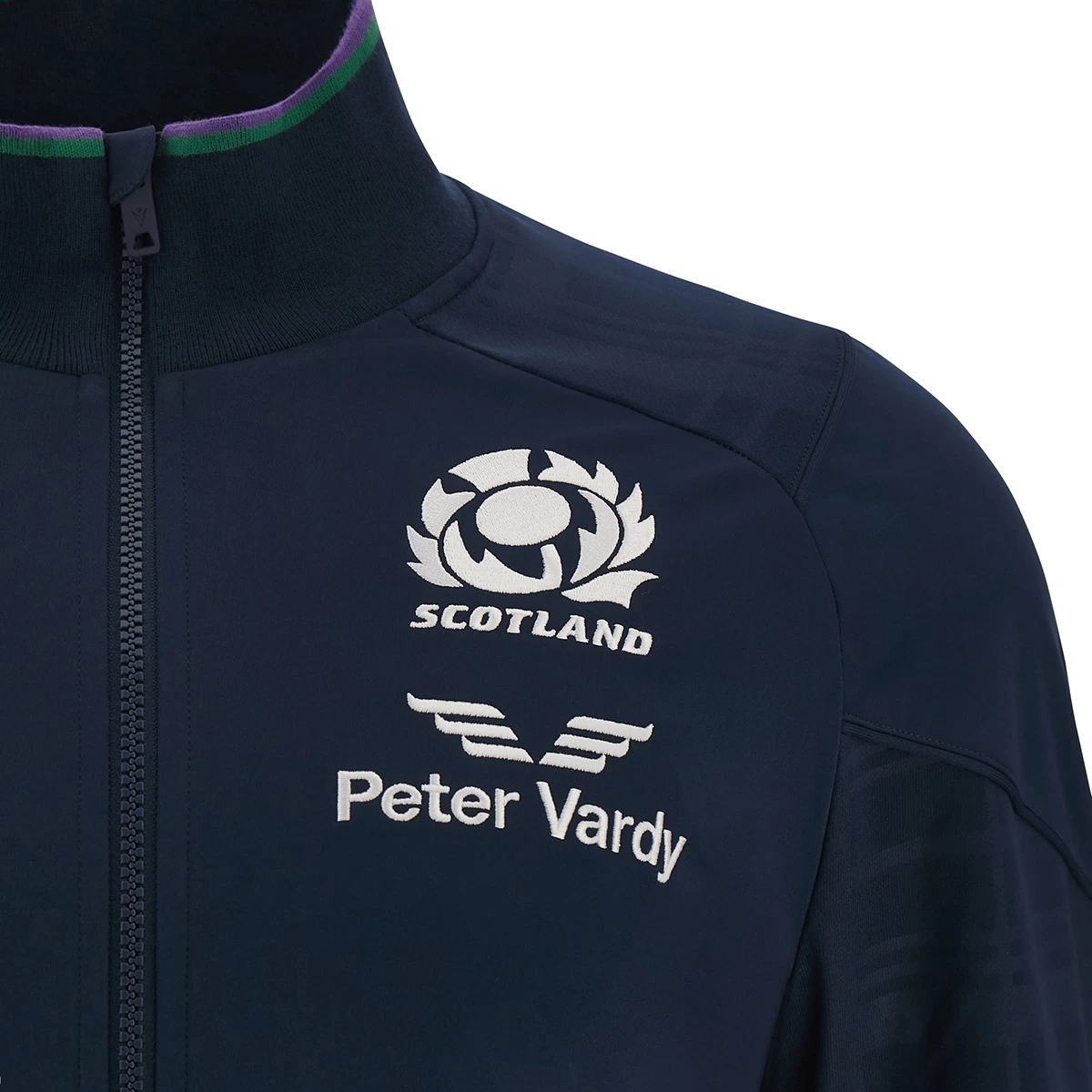 The zip-up jacket has two zip pockets on the front of for keeping your valuables safe during the game. The jacket design features the Scottish Rugby Union tartan design on the upper arms and embroidered Macron, and Scottish Rugby Union logos on the upper chest alongside the Peter Vardy Sponsor. The back of the jacket also has an embroidered Scotland flag and lettering embroidered at the bottom of the neck.