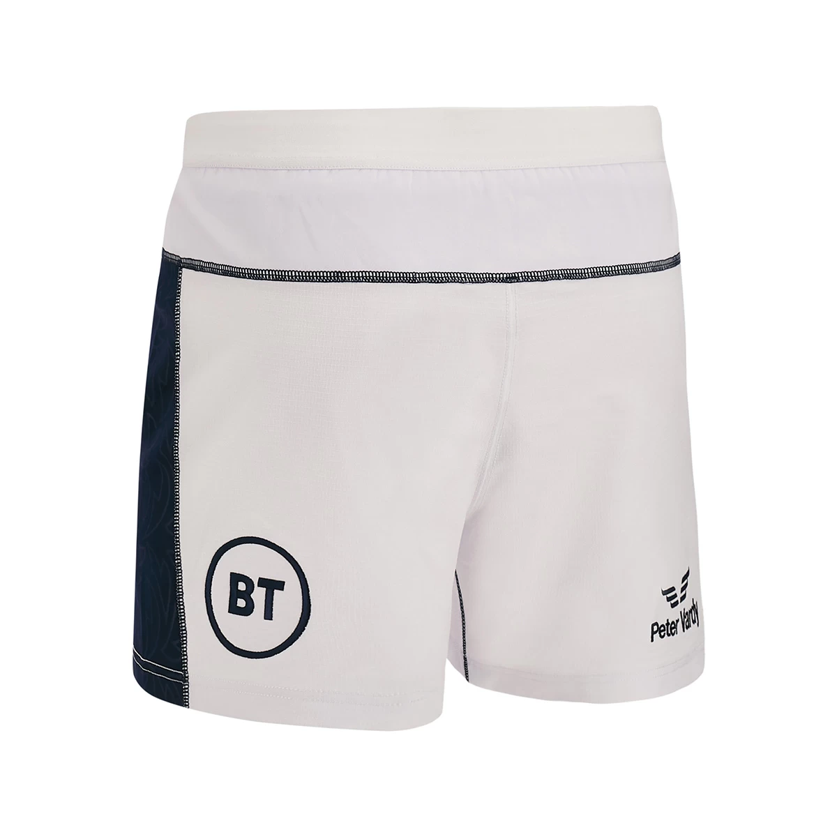 Continuing the popular white from last season and all new blue stripes feature alongside Macron branding and the traditional Scottish Rugby club crest.