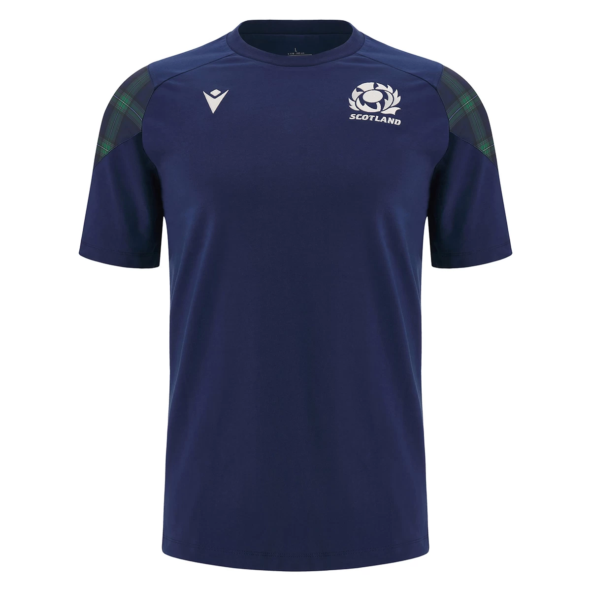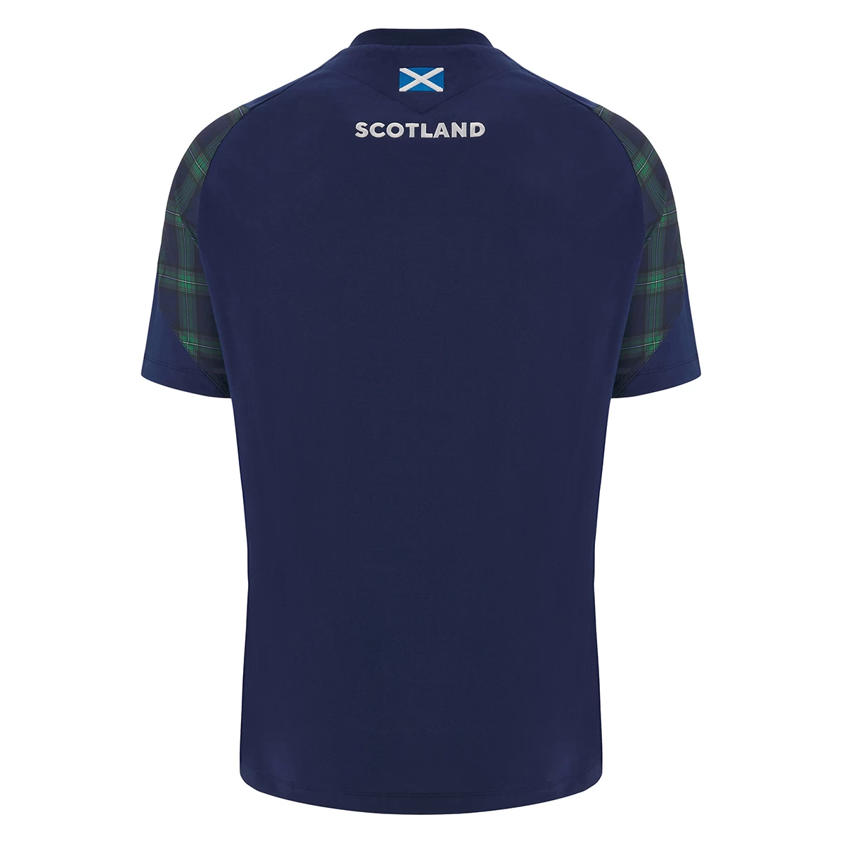 Show your support for the Scotland team this season, at the stadium and beyond in this 2023/24 navy Scotland Mens Travel Polycotton T-Shirt by Macron.