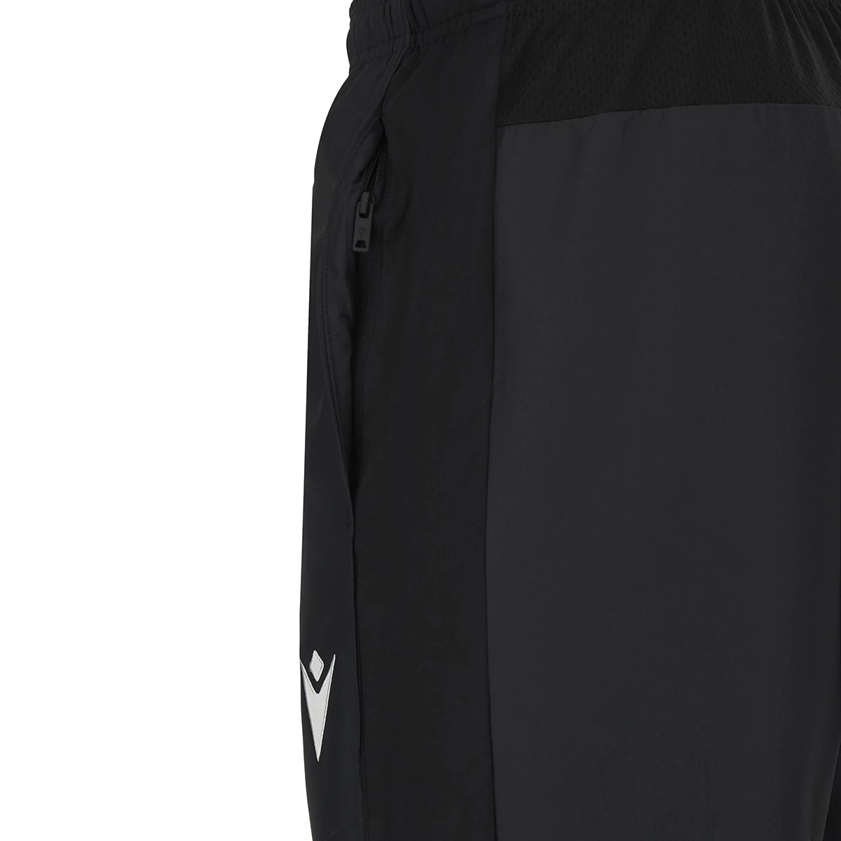 The black travel track pants feature piping and SRU tartan panels to match this season’s kit. The detailing on the upper thigh proudly shows off the embroidered Scottish Rugby Union and Macron logos. The track pants also feature zip pockets and zip on the calf too. The track pants have a micromesh panel under the waistband to keep you cool while working out. The waistband is elasticated with a drawstring for optimum comfort and a perfect fit.