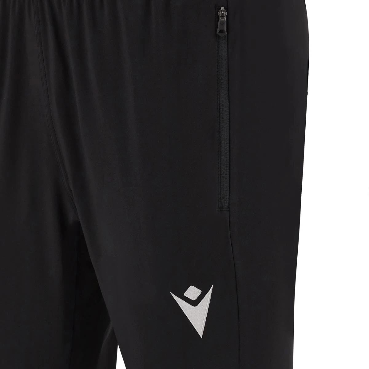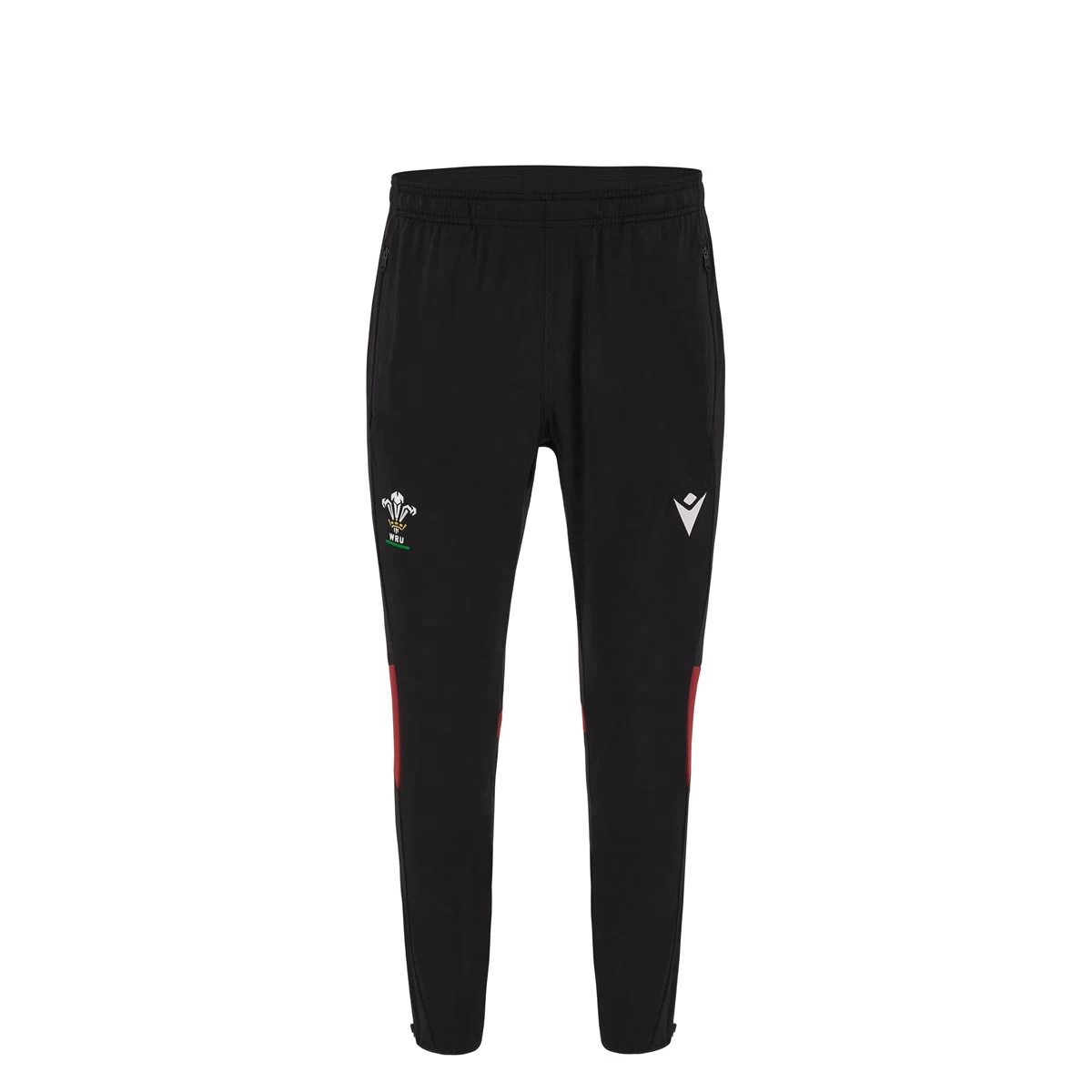These Macron Wales Kids Training Fitted Track Pants in black are ideal for gym training or wearing as part of your every-day style to support the Wales team from the Principality stadium and beyond. The black, full-length training track pants are made from poly-stretch and micromesh material to keep you cool while working out.