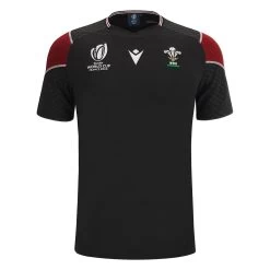 The shirt features dak red shoulder detailing to match this seasons kit. The upper chest of the shirt proudly shows off the Welsh Rugby Union logo over the heart alongside the Macron logo and Rugby World Cup logo embroidered on the upper right chest.
