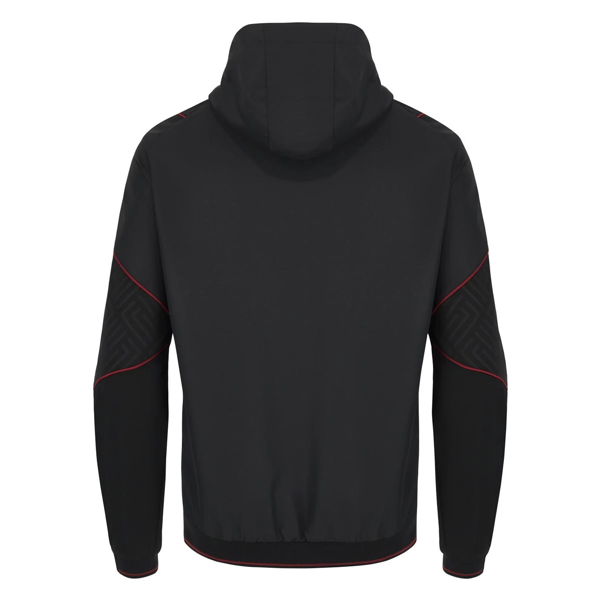 This Macron Wales Mens Travel Full Zip Hoodie in black is ideal for wearing as part of your every-day style while supporting the Wales team from the Principality stadium and beyond. The black full zip hoodie is made from a microfibre and poly-diagonal fabric with a crepe lining to keep you cool and comfortable while supporting the team.
