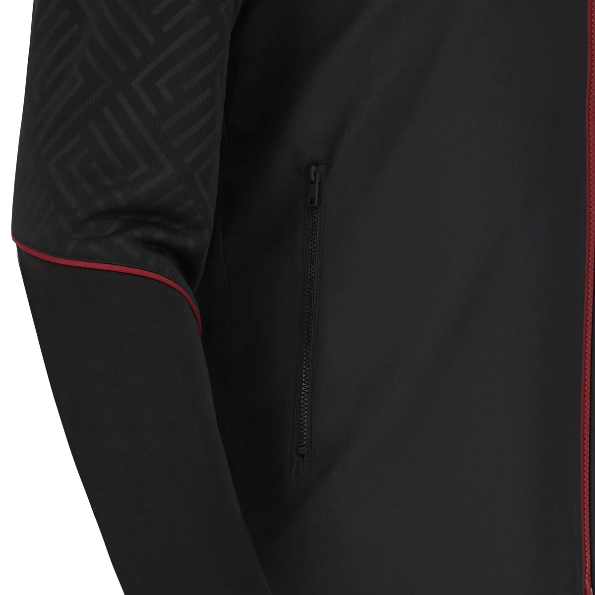 The black hoodie features dark red piping and zip to match this season’s kit. The detailing on the upper chest proudly shows off the embroidered Welsh Rugby Union and Macron logos. The hoodie also features two zip pockets and a full zip on the front. The Hoodie has rib knit cuffs and hem to keep the warmth inside during those colder games.