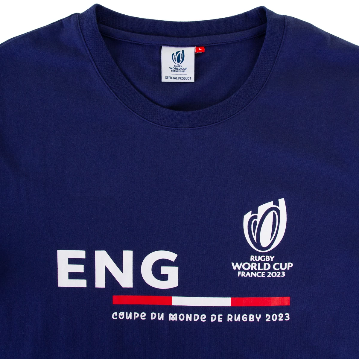 In English national colours, their flag appears on the sleeve of this supporters tee shirt while the RWC logo adorns the upper chest.Â