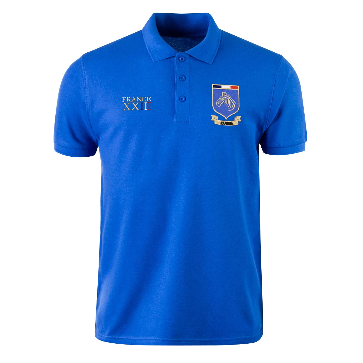Made from ring-spun cotton, this France XXIII Collection polo shirt is perfect for backing the Namibia rugby team this World Cup season. This classic, semi-fitted polo is cool and comfortable with a button up collar and ribbed sleeve cuffs – making it ideal for those wanting a more classic and traditional look. This blue short-sleeved polo proudly shows off the Namibia crest and the France XXIII Collection logo embroidered on the upper chest.