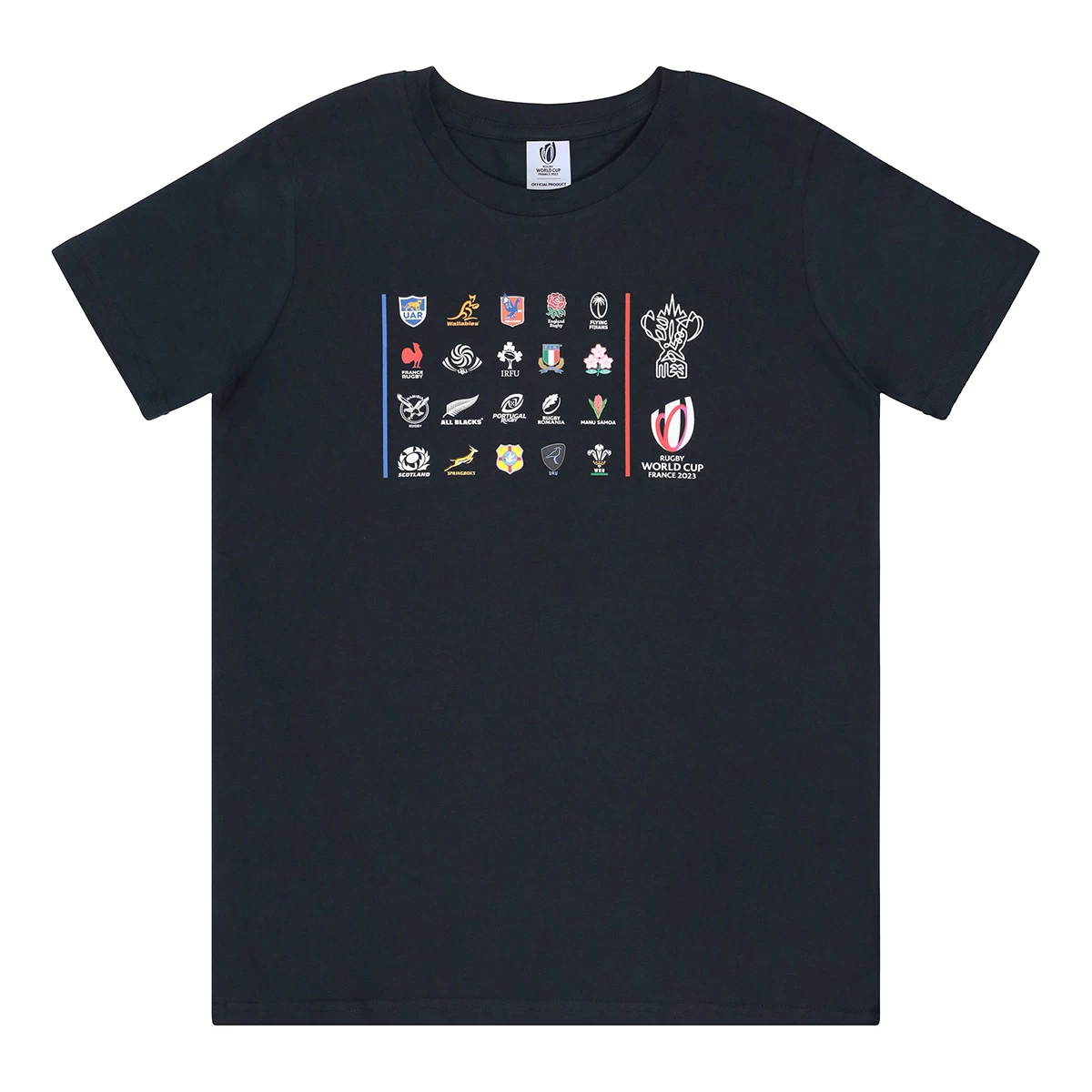 This t-shirt is perfect for showing your support for the upcoming competition and the design showcases all 20 qualified nations, the famous Web Ellis Cup and the official Rugby World Cup 2023 logo on the front of this t-shirt.Â
