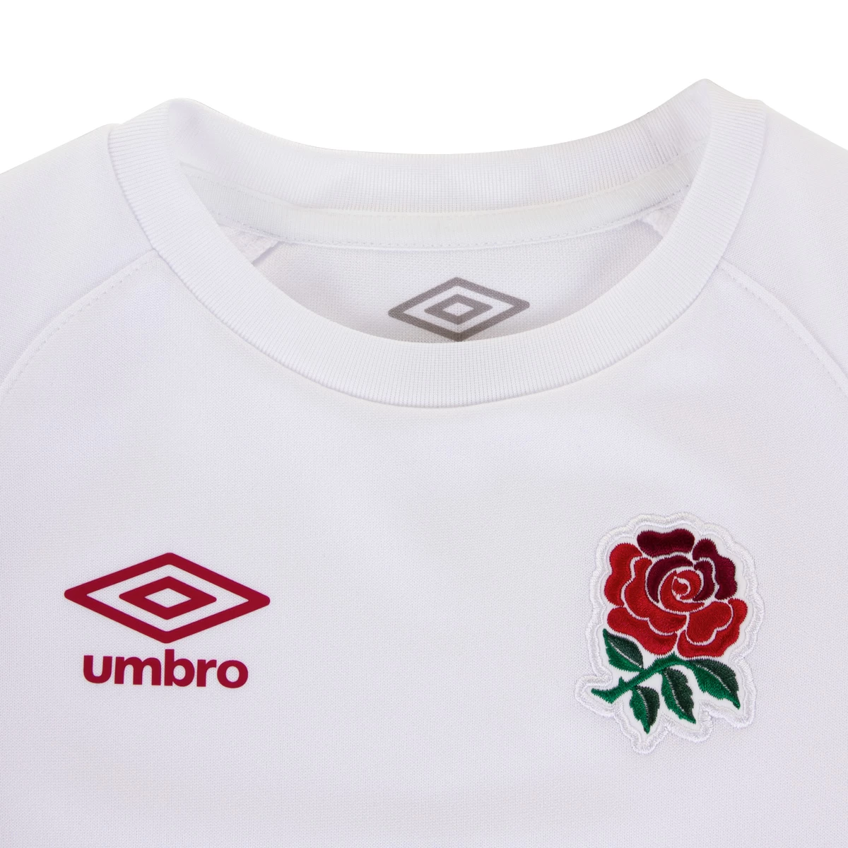 This all-new rugby kit rom Umbro features a revamped design taking inspiration from the St Georges Cross and red horizontal sleeve detailing.Â