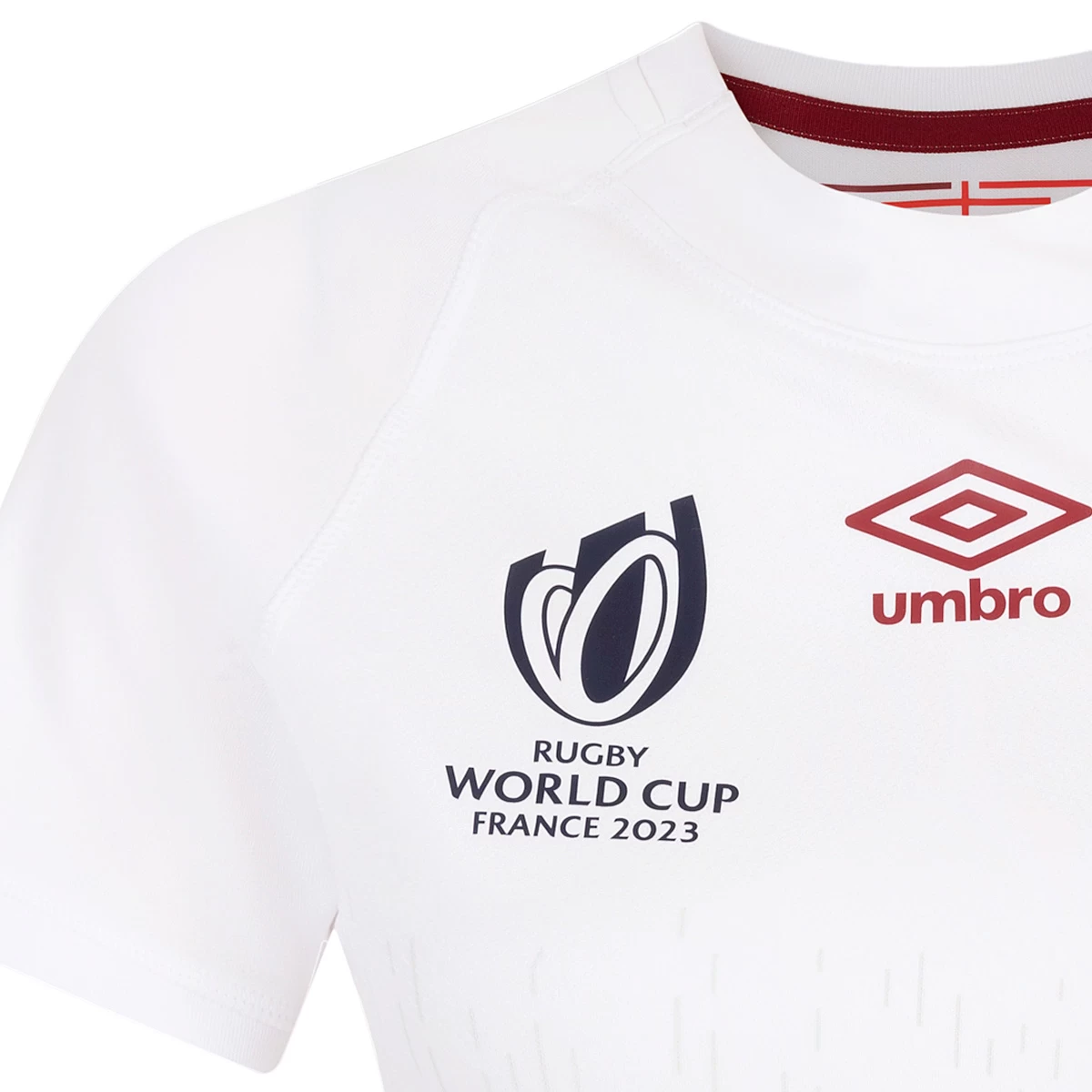 Show your support for the England team this season at Twickenham and beyond in this England Kids Rugby World Cup 2023 Home Rugby Shirt by Umbro.