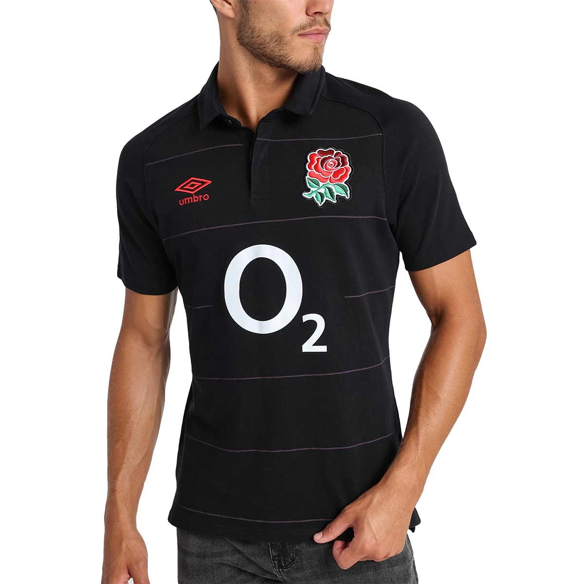 The England Classic Alternate Rugby Shirt follows the same replica design as the alternate shirt worn by the players for the season ahead. The shirt also includes a classic, durable collar alongside the embroidered English rose and Umbro double diamond to complete this classic look.