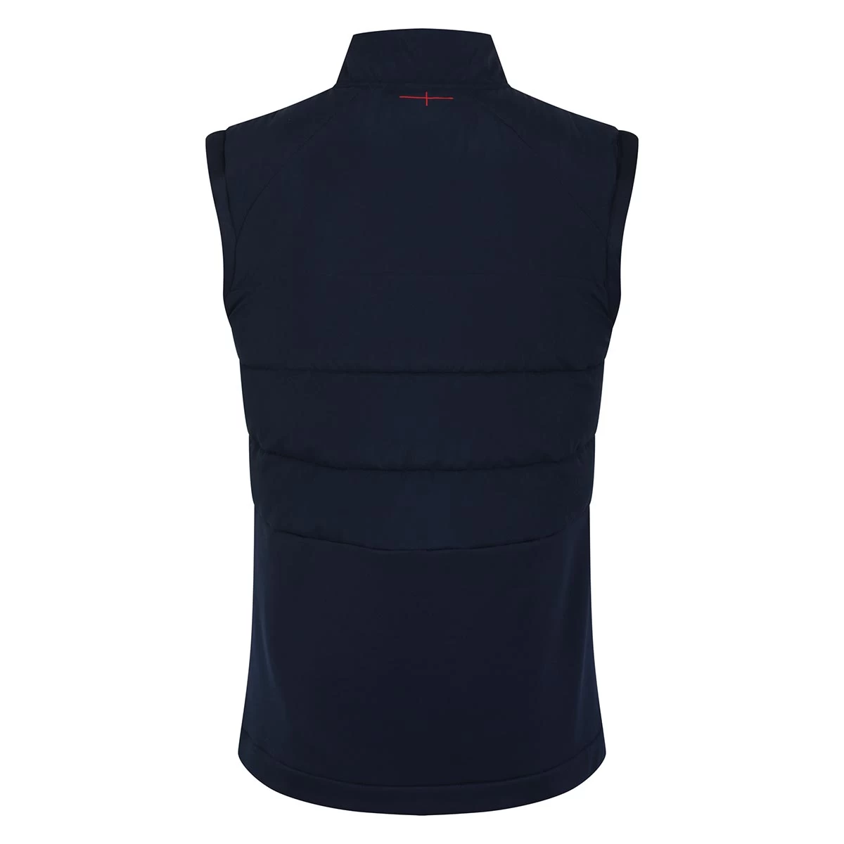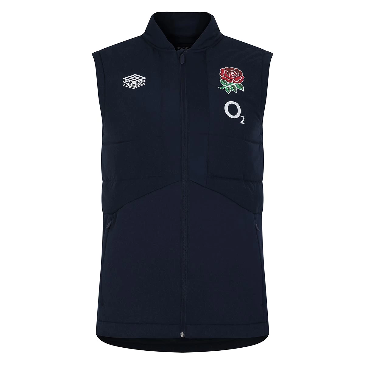 The gilet features an insulated design with knit lower panels to keep the heat inside. The gilet also has angular panels with concealed zip pockets to keep your valuables safe. The upper chest of the jacket proudly shows off the England Rugby logo over the heart alongside the Umbro logo on the upper left chest.