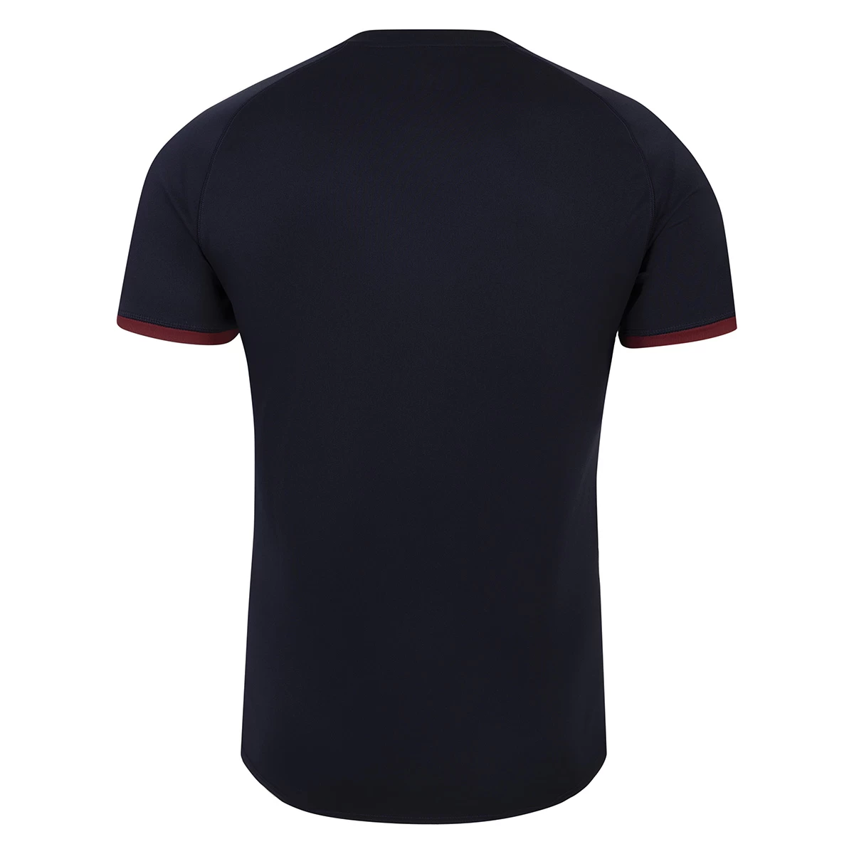 The short-sleeved shirt features a rib panelled crew neckline and a dropped back hem. The upper chest of the shirt proudly shows off the England Rugby logo over the heart alongside the Umbro and Rugby World Cup logos.