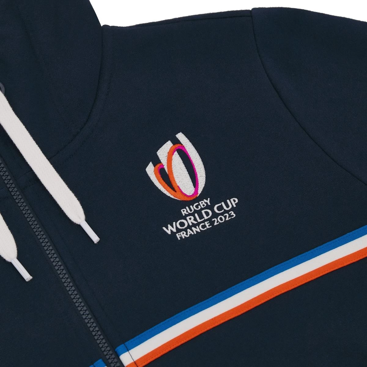 This versatile full zip hoodie is perfect for training, rest days and supporting at the Rugby World Cup this year. This full zip hoodie also features striped detailing on front in the RWC 2023 colours and adjustable drawstrings for a secure, personal fit.Â